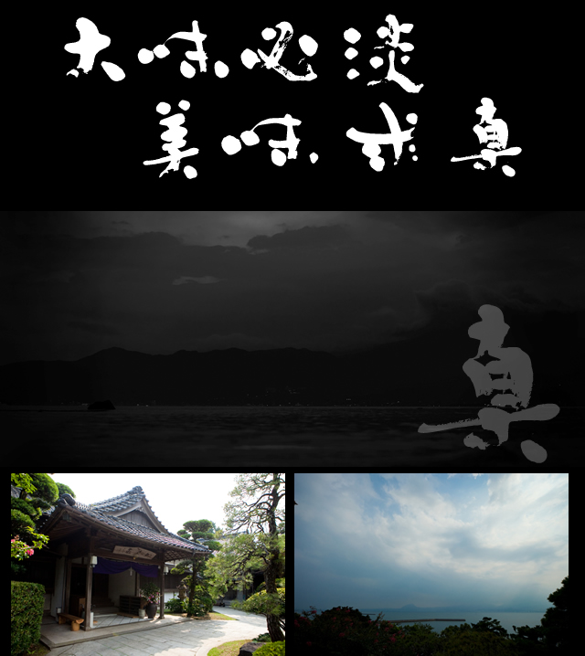 別府湾と高崎山を借景とした庭園。 古木が歳月を経て、風情を醸し出す。 日本の伝統的木造建築の 粋をつくした桟瓦葺純和風建築。