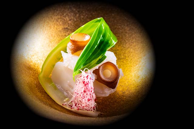 的山荘では、城下かれいをはじめ、関アジ、関サバ、豊後牛など地産地消を志した懐石料理をご賞味いただけます。